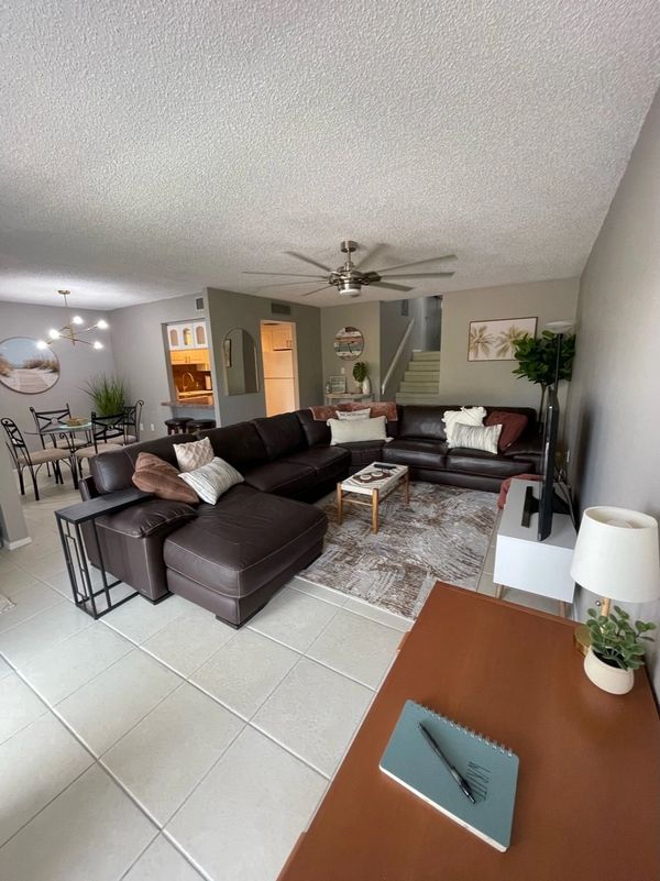 Our roomy condo features 2 bedrooms and 2 bathrooms, all fully furnished including king beds in both bedrooms, a comfy couch, washer/dryer in unit, and a desk just in case you want to squeeze in a little work. The master bedroom has the bathroom attached, and both bedrooms are a half flight of stairs up from the main living area to offer more privacy. The large covered patio is a perfect place to enjoy morning coffee. The location is right off the bridge that goes over the intercoastal water and straight into Indian Rocks Beach, just a 5 block walk or drive.